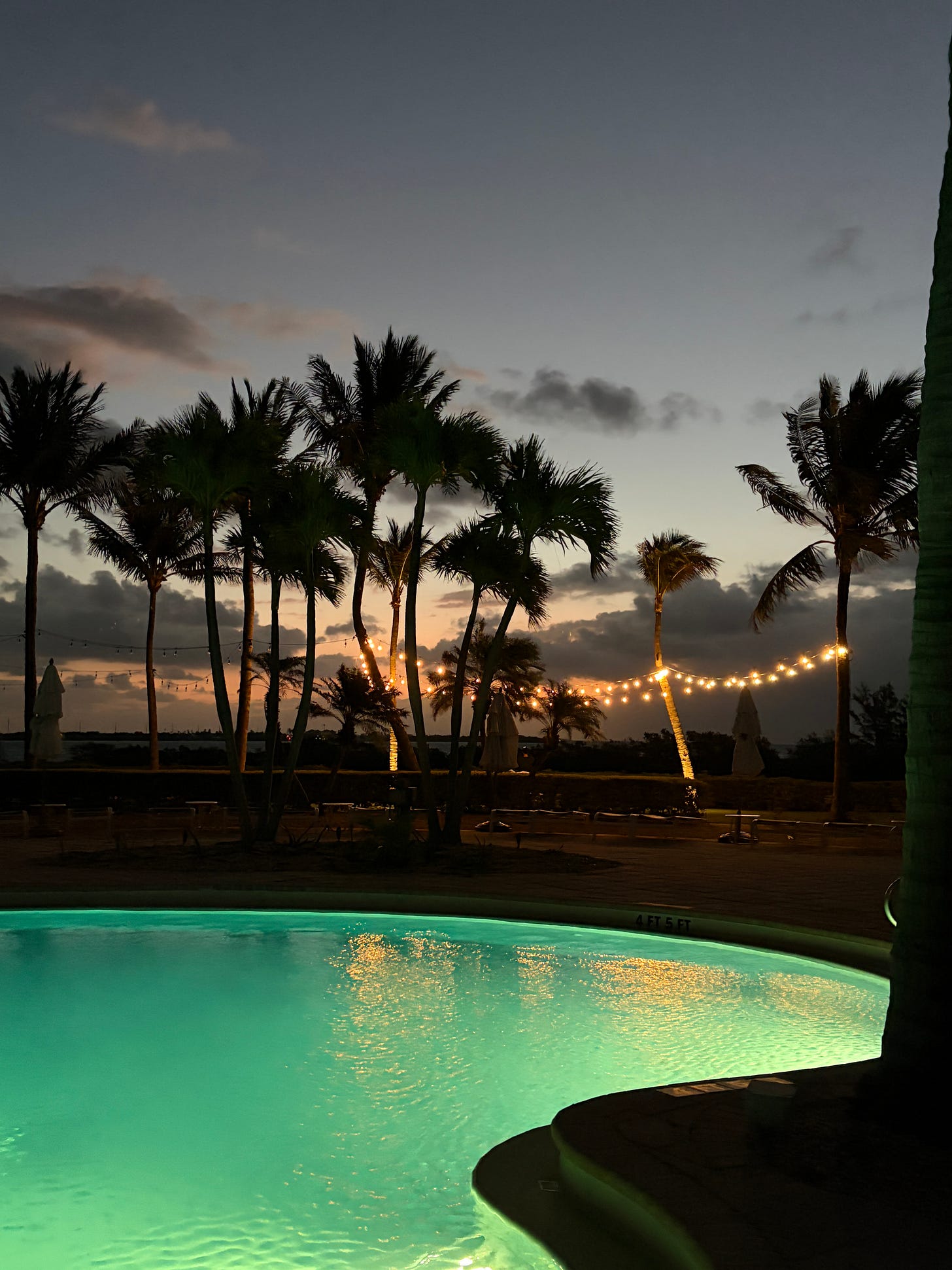 And then there’s this: the pools and jacuzzis close at sundown. In April, that’s barely 8:00pm. We came back from dinner — disappointed, as I’ll get to — wanting to decompress in the water, let the evening recover, find something to salvage from Chrissy’s birthday. The jacuzzi was closed.