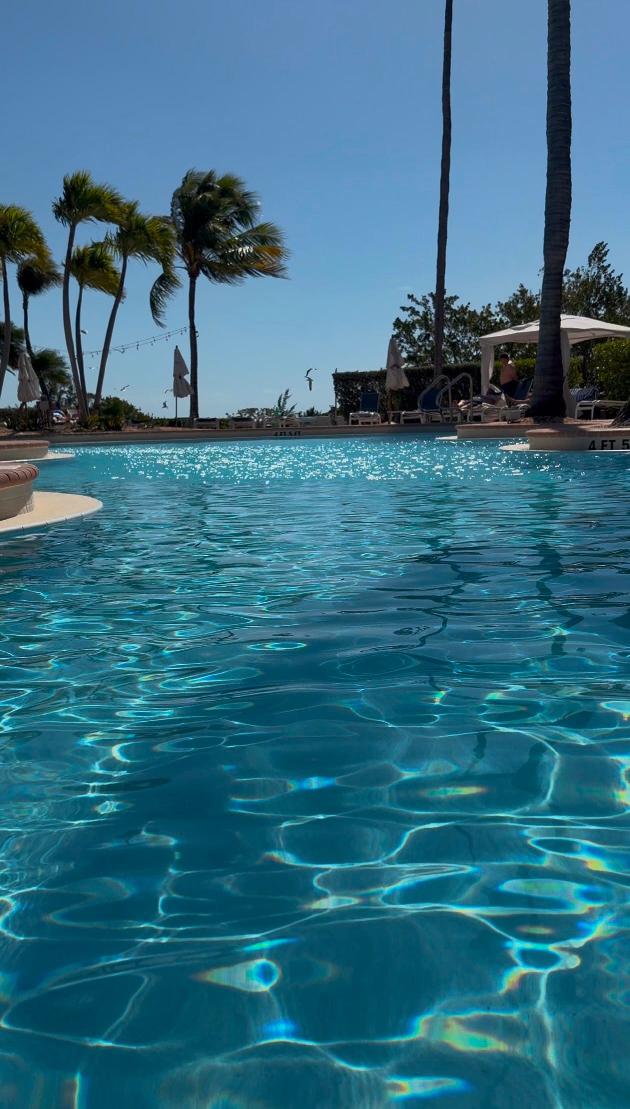 Hawks Cay operates three pools (we never found the third pool) and two jacuzzi’s, including an adults-only option called Oasis Cay. I’ll say plainly: the Oasis Cay saved the weekend. Without it, we would have had no outdoor space that felt calibrated to what we came for. The main resort pool was overrun with children — which is not a moral failing, it’s a family resort, and families come — but it meant that the two-pool structure wasn’t a luxury, it was a necessity. The adults pool wasn’t an upgrade. It was the baseline.