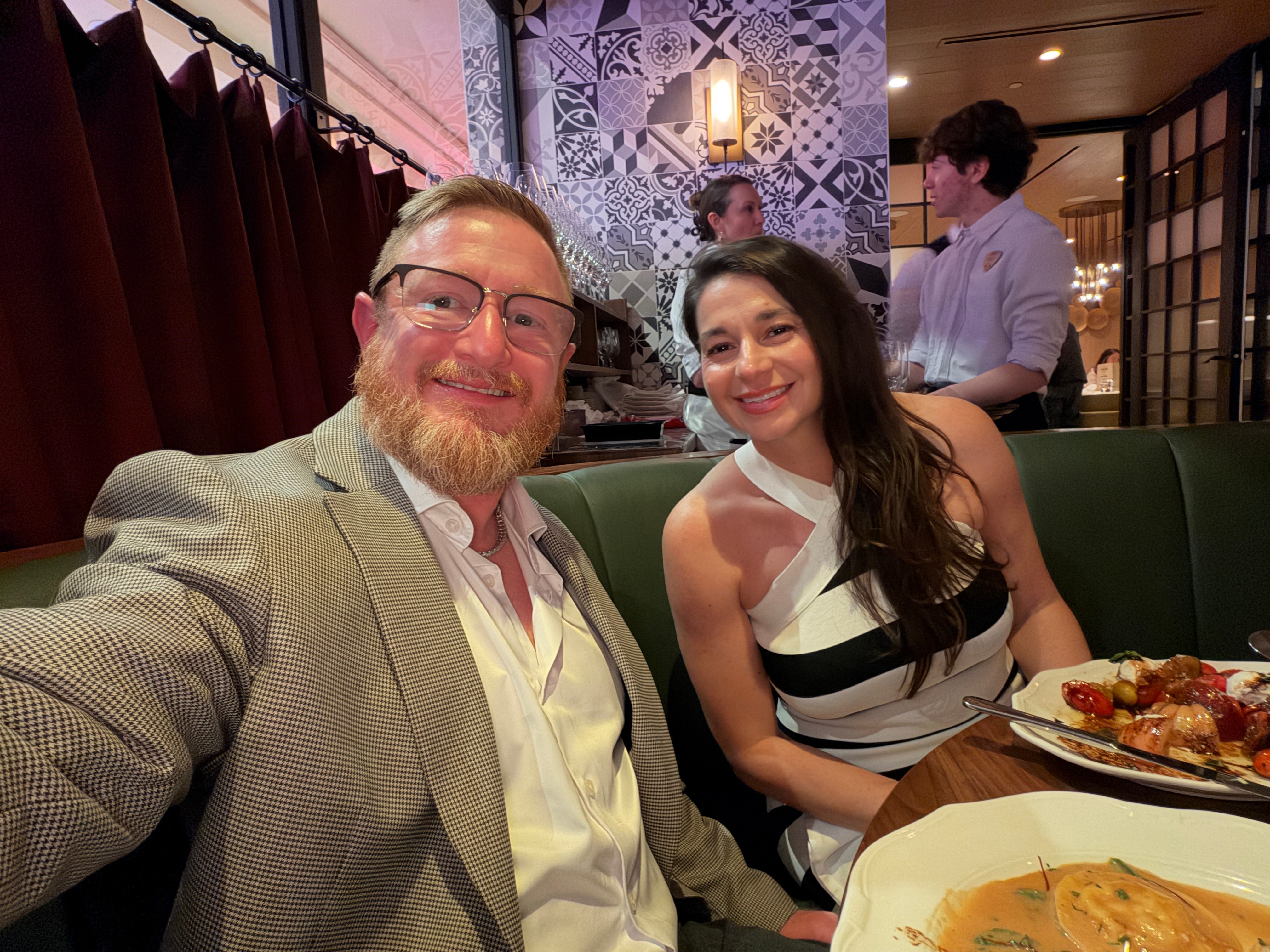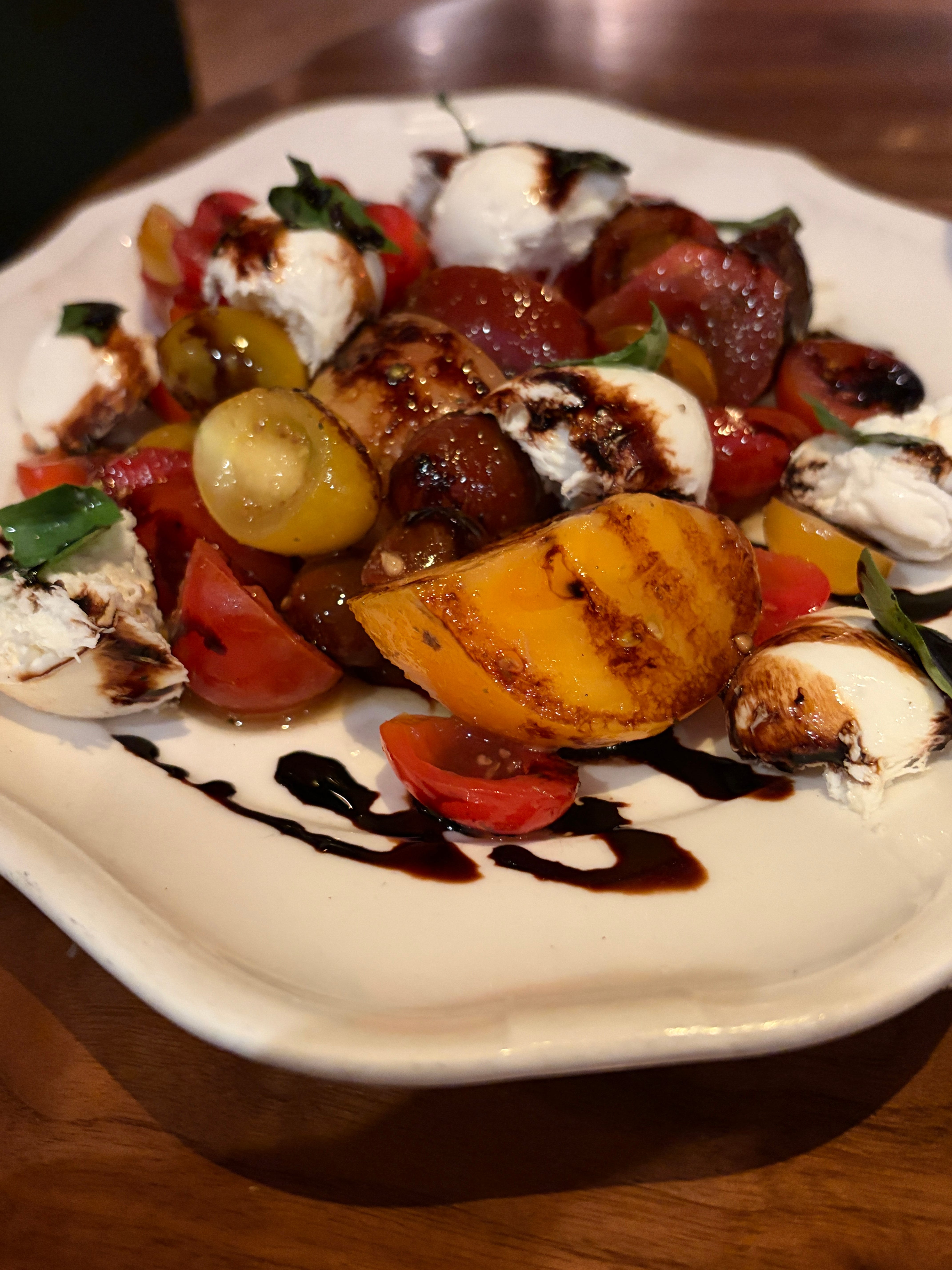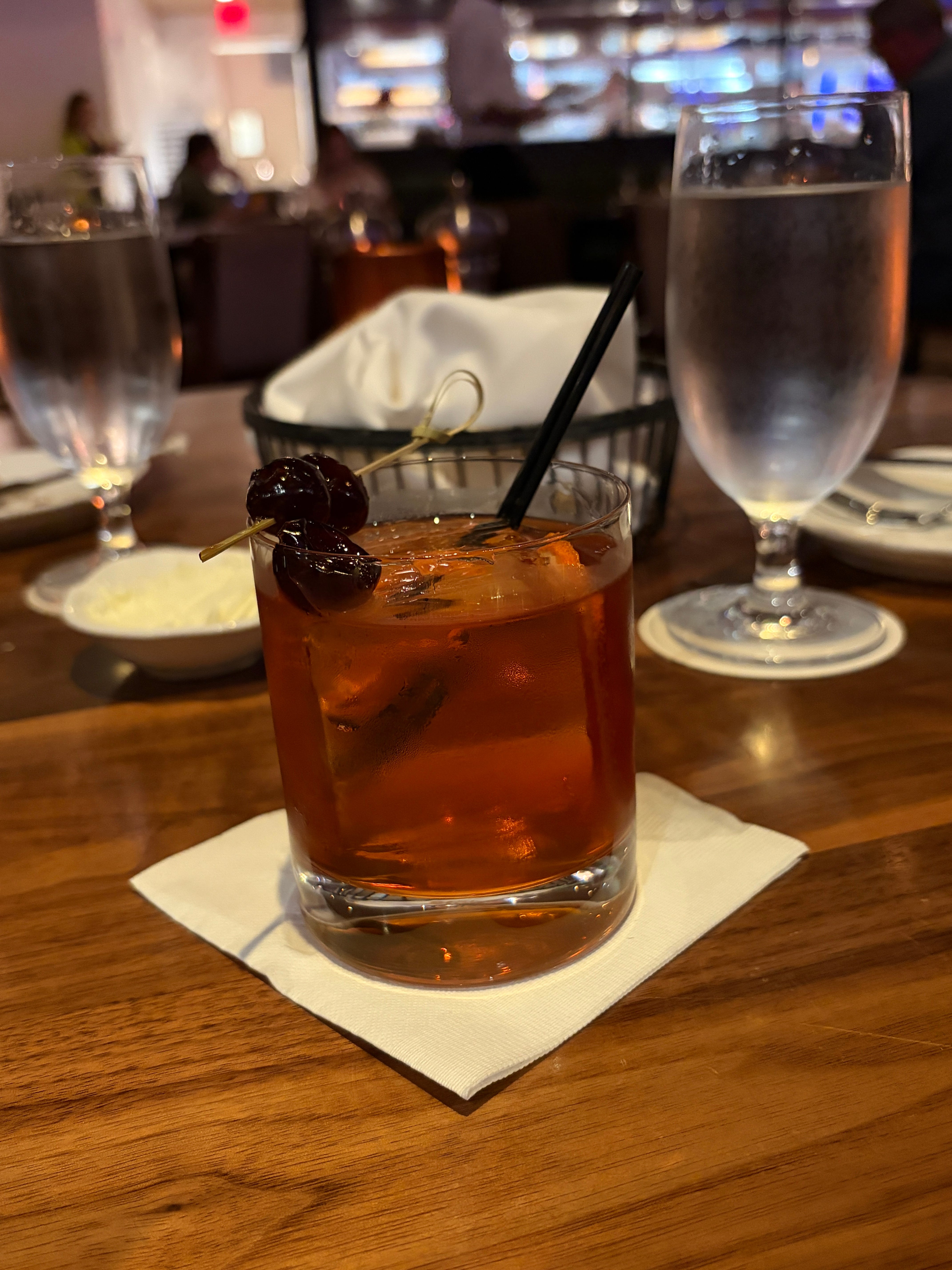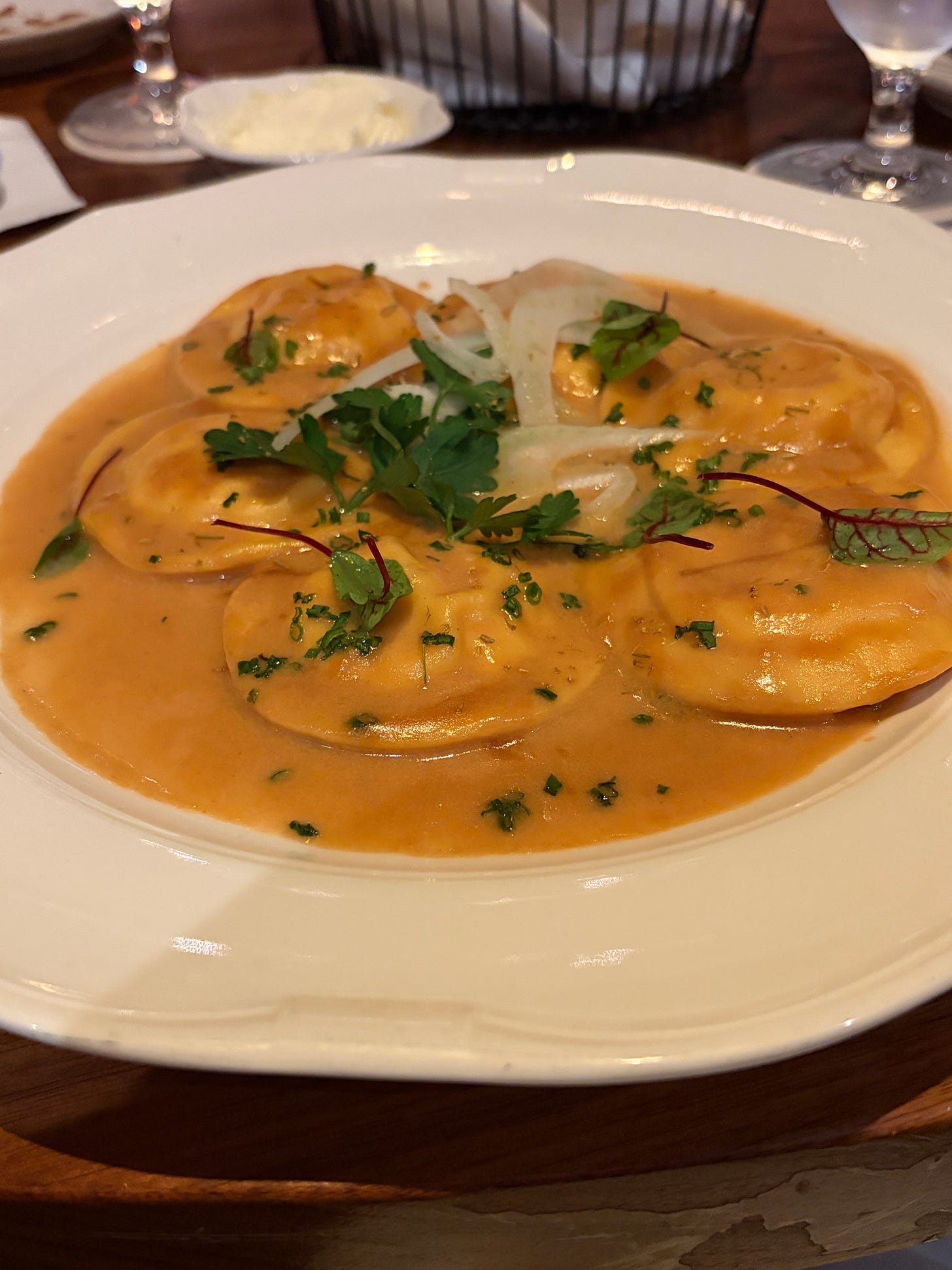 The food missed — my lobster ravioli arrived undercooked, the sauce thin and running to the rim, and Chrissy’s caprese was a generous and largely uneventful plate of tomatoes. The kitchen had an off night. It happens. A great room and a great bourbon is still a meal worth having. You don’t need everything to work. You need enough.
